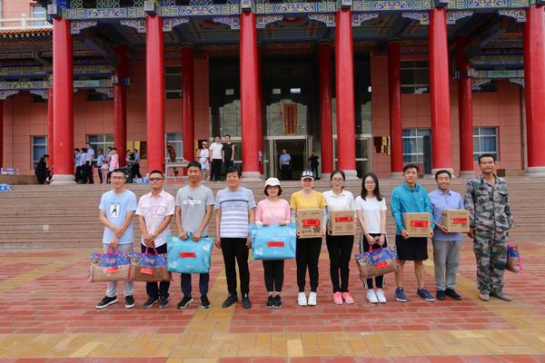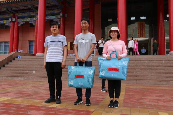 集团公司党委书记叶长林为加入徒步获奖员工揭晓奖品