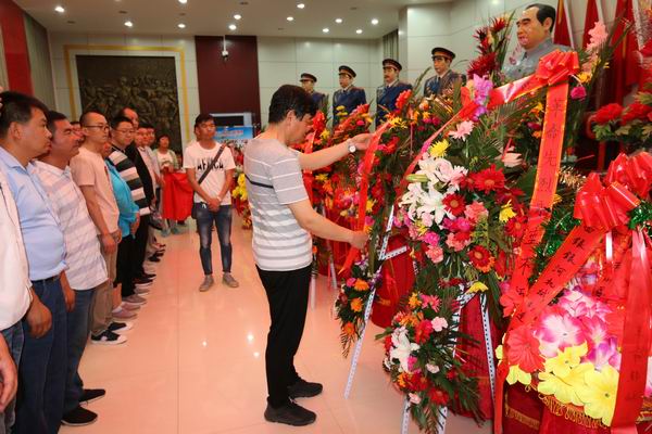 集团公司党委书记叶长林向导党员和员工代表向十大元帅像敬献花篮