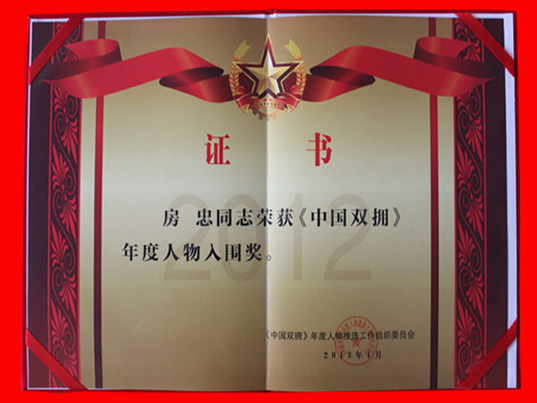 3044am永利集团集团董事长房忠荣获“中国双拥年度人物入围奖”