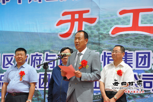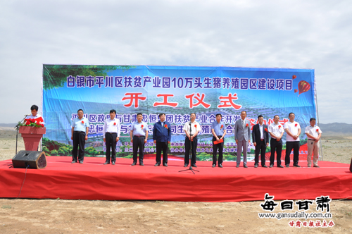 白银市人民政府副市长、平川区委书记高云翔出席项目签约仪式并宣布白银市平川区扶贫工业园10万头生猪养殖园区建设项目开工 。平川区委副书记李贺武先容了平川区扶贫工业园10万头生猪养殖园区建设项目情形 。