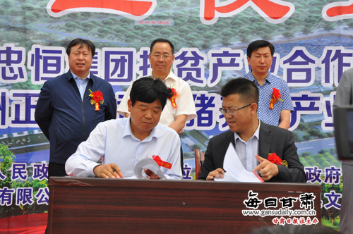 甘肃恒玉生态农业生长有限公司法定代表人叶长林与兰州正至公司副总裁胡彦强签署生猪养殖工业相助协议 。